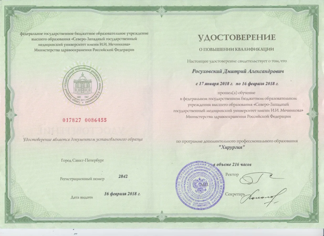 Я, Дмитрий Александрович Росуховский, был одним из первых российских флебологов, который начал применять этот метод в 2009.